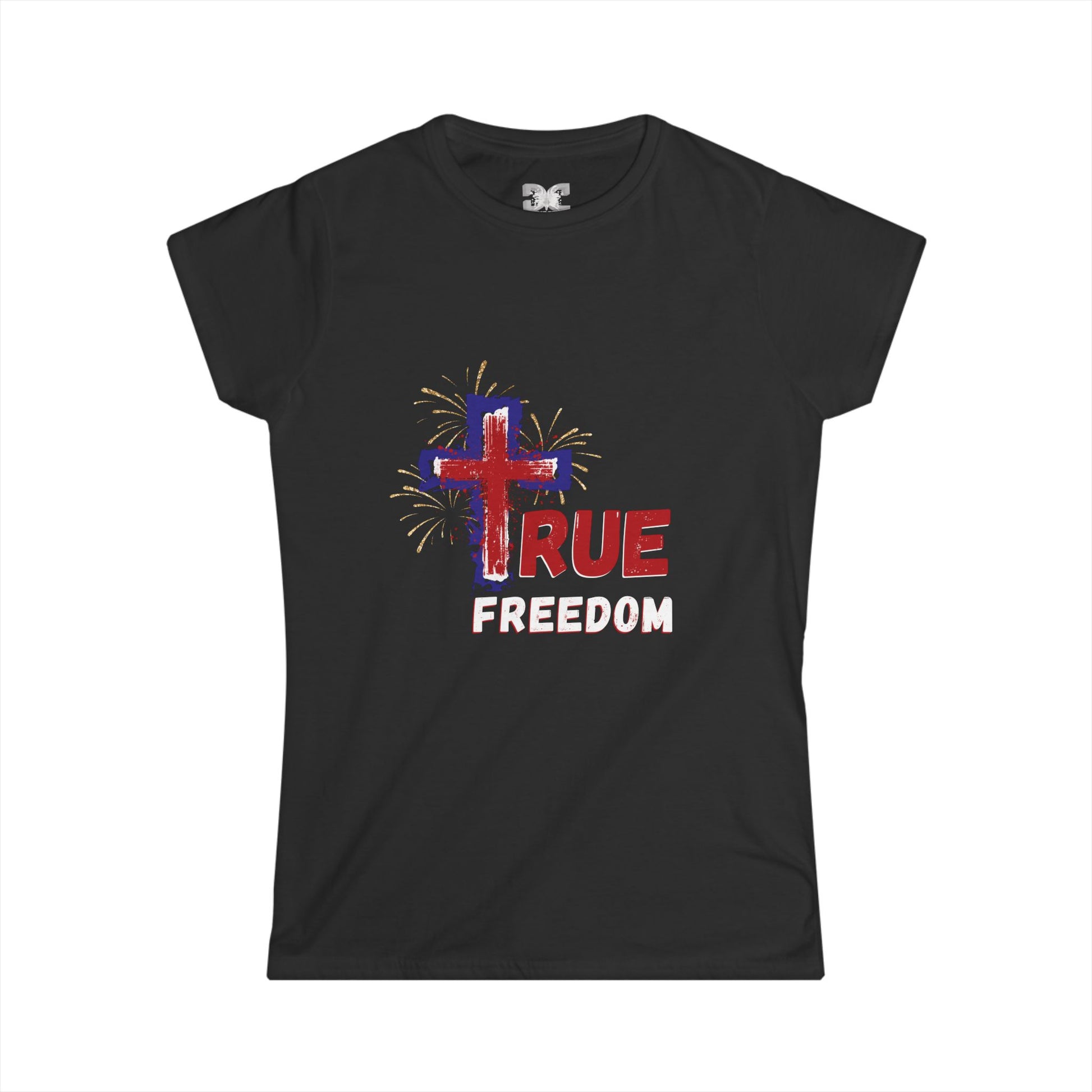 Jesus True Freedom: Women's Softstyle Tee - Patriotic Christian Gift, God And Country, Faith Freedom, Religious Patriot, Christian 4th of July, Conservative G, True Patriots